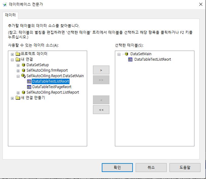 - DataTable연결 : 필드 탐색기 > 데이터베이스 필드 > 우클릭 > 데이터베이스 전문가