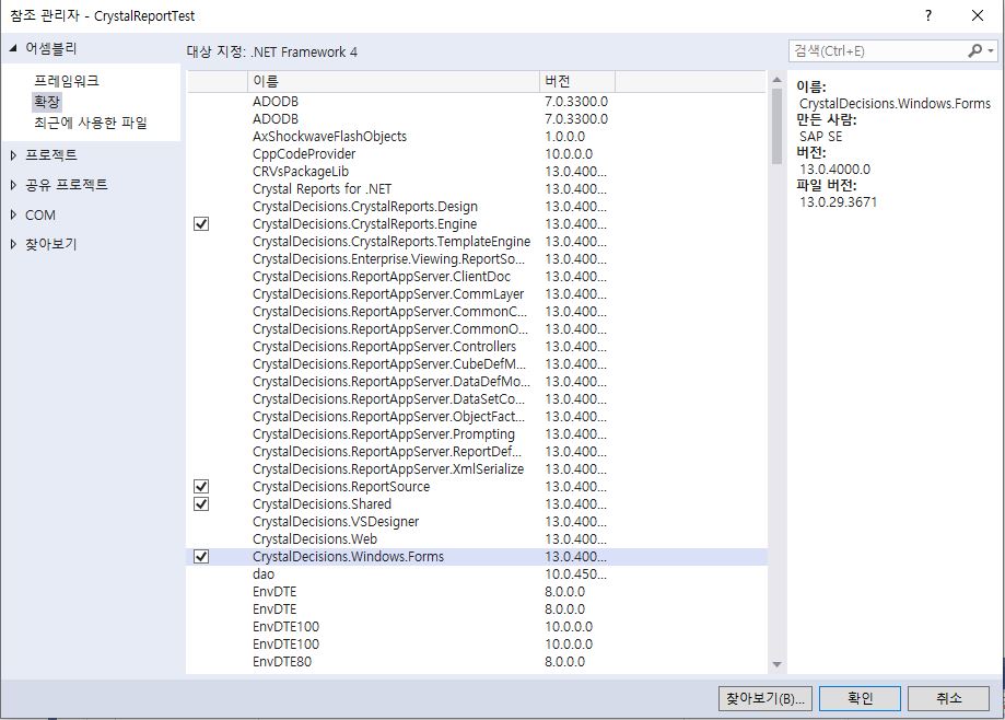 프로젝트에 크리스탈 리포트 참조 추가