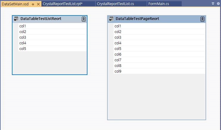 - DataSet생성(DataSet안의 DataTable 하나당 리포트 파일과 대응)