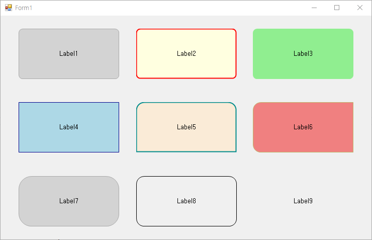 라운드된 외곽선이 있는 커스텀 라벨 컨트롤